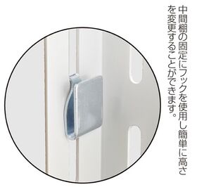 ●中間棚の固定にフックを使用し簡単に高さを変更することができます。