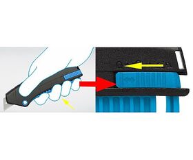 ●ロック、解除、刃交換の3段階調節スライダー付