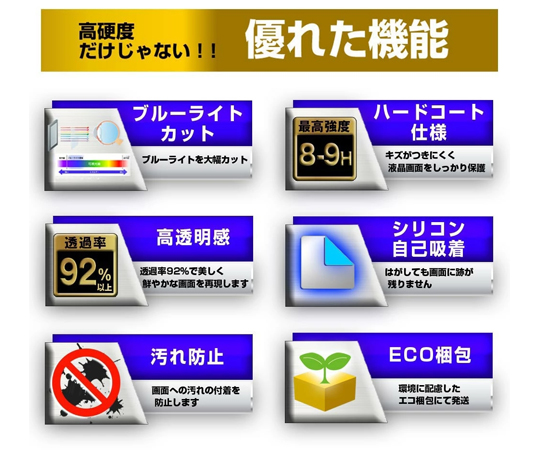 ●ガラス同等の表面硬度(8~9H)でキズがつきにくく、画面を美しく保ちます。