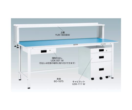 ●青色ポリ化粧天板を使用し、目に優しく、長期間の作業でも負担が軽減できます。商品の仕分けや検品に適しています。表面は滑らかで、ソフトな光沢があり清潔感を保持し、耐水性・防汚性にも優れています。