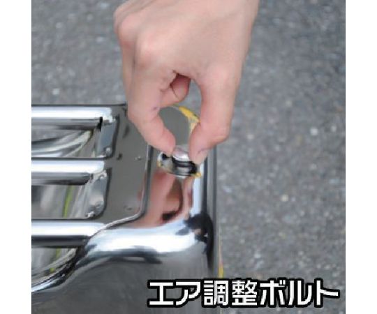 ●注意:給油前には、必ずエア調整ボルトを緩め、缶内の圧力を抜いてください。取扱説明書をよく読み、注意事項・開口手順を守ること。発電機などへの給油時は携行缶内のガスを抜いてからタンクキャップをはずしてください。引火の原因となり大変危険です。作動中の発電機や、エンジンのかかった車両などへの継ぎ足し給油は絶対にやめてください。直射日光のあたる場所や、作動中の発電機など、熱を放出する物の側に保管することは、絶対にやめてください。