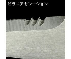 ●ピラニアセレーション 大きなU形刃で、ケーブルやロープを逃さずカットできます。 刃の形状を改良し、切れ味を維持しつつ耐久性を向上