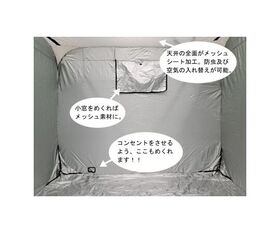 ●3.感染症、防虫対策に対応天井の全面がメッシュシート加工。防虫及び空気の入れ替えが可能。