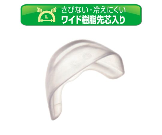 ●足先への圧迫を抑える、幅広の樹脂先芯。鋼製先芯と比べ、つま先が冷えにくく、サビず、更に軽量です。