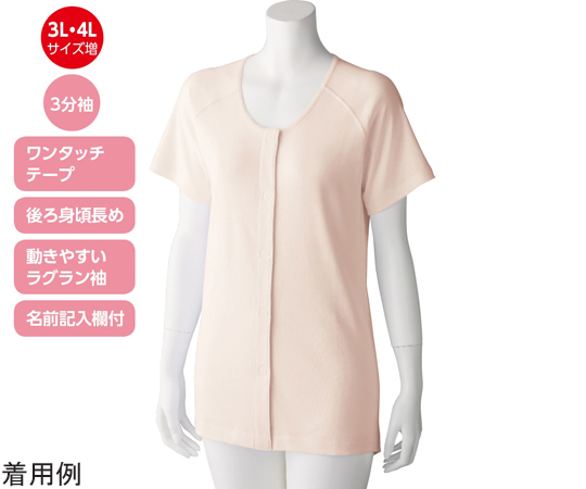 婦人3分袖 ワンタッチシャツ(2枚組)ピーチ M 98003