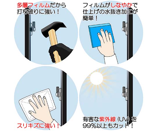 ●ヒビ割れたガラスに貼りますと、ガラスの破片でケガをする場合がありますので貼らないでくさい。