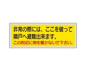 消防標識 非常の際には、ここを破って隣戸へ避難出来ます。この附近に物を置かないで下さい。 319-50