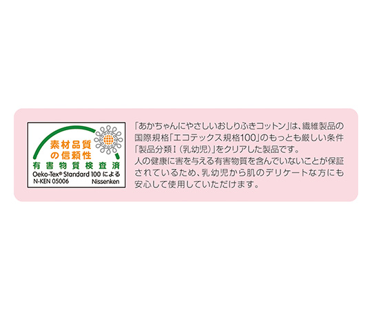 ●「エコテックス規格100」をクリアした敏感肌の赤ちゃんにもやさしい、おしりふきコットンです。