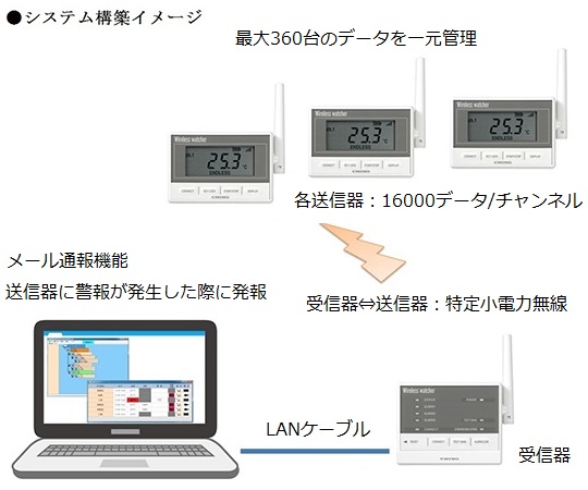 ●パソコン1台+別売のイーサネット接続受信機で最大360箇所のデータを一元管理。