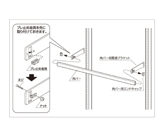 ●セット内容:角バー×1、ブラケット、エンドキャップ、ブレ止め金具×各2