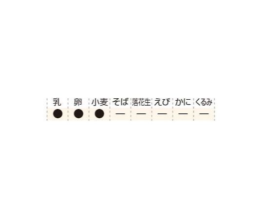 ●▼乳:○、乳:○、小麦:○、そば:-、落花生:-、えび:-、かに:-、くるみ:-。(特定原材料に準ずるもの)/ア-モンド:-、あわび:-、いか:-、いくら:-、オレンジ:-、カシューナッツ:-、キウイフルーツ:-、牛肉:-、ごま:△、さけ:-、さば:-、大豆:○、鶏肉:-、バナナ:-、豚肉:-、まつたけ:-、もも:-、やまいも:-、りんご:-、ゼラチン:-。