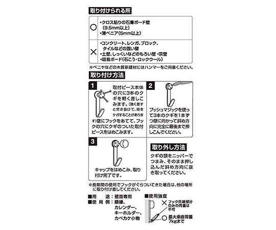 ●付属品:フック/6個、キャップ/6個、取付ピース/6個、クギ/25本(予備7本)