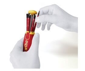 ●絶縁スリムビット6本を内蔵したマガジンタイプのリフトアップ絶縁ホルダーです。