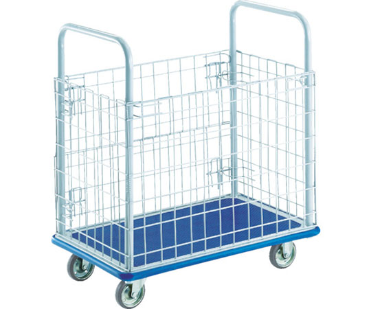 ●材質/仕上:荷台/スチール、ハンドル/スチール、金網/スチール、マット/塩化ビニール、ハンドル表面処理/粉体塗装、キャスター金具/スチール、車輪/ブタジエンゴム(SBR)
