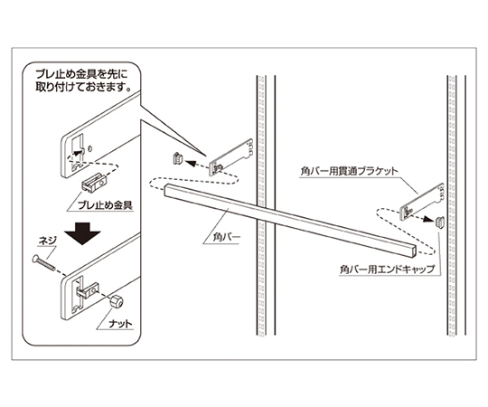 ●セット内容:角バー×1 ブラケット・エンドキャップ・ブレ止め金具×各2