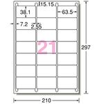 エーワン ラベルシール[レーザープリンタ] マット紙・ホワイト A4 21面 63.5×38.1mm 四辺余白付 角丸 28399 1冊(20シート)