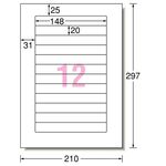 エーワン ラベルシール[インクジェット] マット紙・ホワイト A4 12面 148×20mm 四辺余白付 角丸(VHSビデオ背面用) 28856 1冊(5シート)