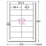 エーワン ラベルシール[レーザープリンタ] 再生紙・ホワイト A4 12面 86.4×42.3mm 四辺余白付 31382 1冊(20シート)