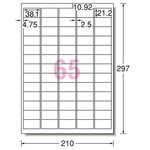 エーワン ラベルシール[プリンタ兼用] 下地がかくせる修正タイプ マット紙・ホワイト A4 65面 38.1×21.2mm 四辺余白付 31569 1冊(12シート)