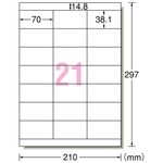 エーワン ラベルシール[レーザープリンタ] 再生紙・ホワイト A4 21面 70×38.1mm 上下余白付 31385 1冊(20シート)