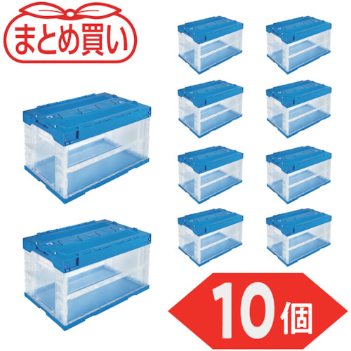 TRUSCO 【まとめ買い】オリコン α折りたたみコンテナ 50L スライドロックフタ付 透明ブルー 10個