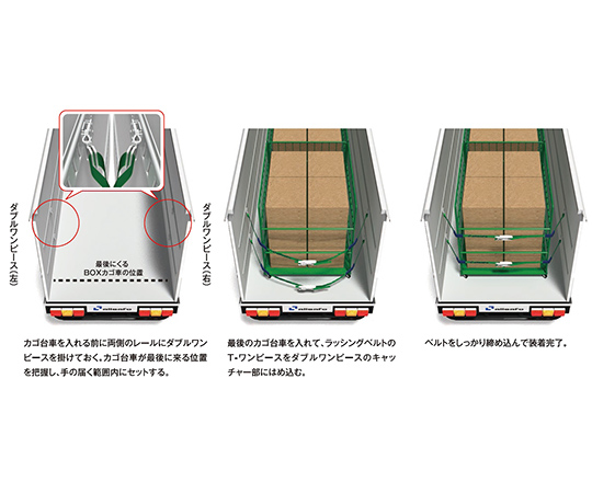●狭い庫内を有効に活用しT-ワンピースタイプのベルトと併用することにより貨物固定の安全性・信頼性を向上します。