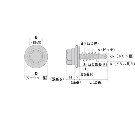 ●一般的にはドリルねじと呼ばれます。ねじの先端部分にドリル刃先を有することにより、厚み1.6mm以上の鋼板に対し、穴あけ・タップ・締付けがワンタッチでできるねじです。
