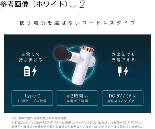 ●どこでも使えるコードレス(充電式)