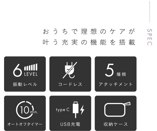 ●付属品:USBコード(Type-C)、収納ケース、アタッチメント5種
