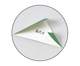 ●抽選会を盛り上げる三角くじ。