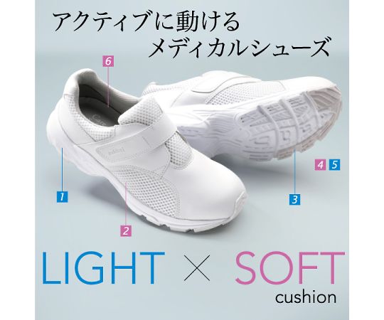 ●超軽量設計でアクティブに動けるメディカルシューズです。ハードな看護師・介護士業務を足元から支えます。