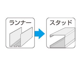 ●軽天内装工事のランナーとスタッドをワンタッチで取り付けるねじです。ランナーとスタッドの締結に使用します。従来この接合は溶接で行っていましたが、ランスタッチはこの作業を簡便化します。