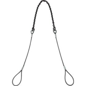 ●ワイヤとチェーンスリングの特徴を活かしたコンビスリングです。●貨物が直接当たる部分には、ワイヤよりもねじれや断線が起きにくいチェーンスリングを使用しています。●吊り手部分には、チェーンよりも軽く取り扱いのしやすいワイヤロープを使用しており、チェーンだけのスリングに比べて総重量が軽くなっています。●ワイヤロープの端末加工には特殊スリーブを使用しており、加工部分のトゲがなく、安全に作業可能です。
