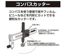 ●紙・ビニール・フィルムなどの薄物を円形にカットできる便利なコンパスカッターです。
