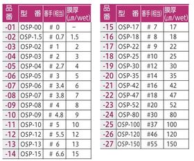 ●ワイヤーバー番手(相当)