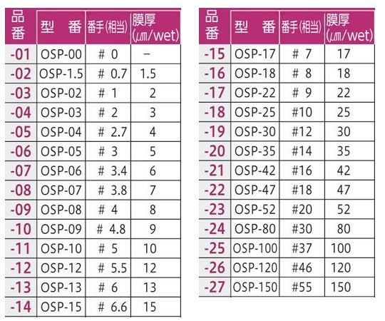 ●ワイヤーバー番手(相当)/膜厚(μm/wet(最大)):#18/47