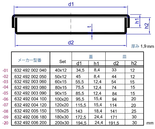 ●蓋の外径(mm):φ180