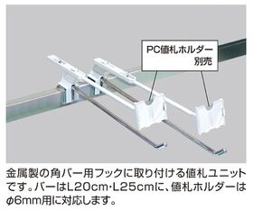 ●金属製の角バー用フックに取り付ける値札ユニットです。