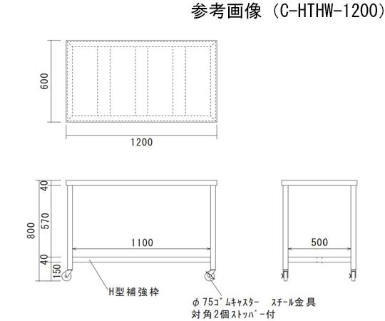 ●キャスター:φ 75 ゴム自在 2 個、φ 75 ゴム自在(ストッパー付)対角に 2 個