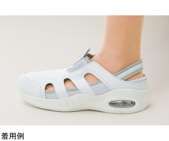 ●▼脱ぎ履きの多い時はバックバンドを踏んでサボタイプとしても使用できる2WAYタイプ