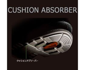 ●クッションアブソーバー:カカト中央の一段低く配置されたブロックが接地時に衝撃を分散させます。
