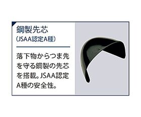 ●落下物からつま先を守る鋼製の先芯を搭載。JSAA認定A種の安全性。
