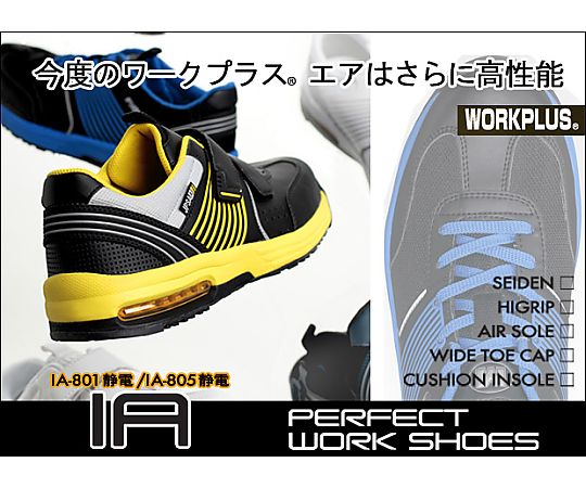 ●安全+静電+耐滑+エアクッションを搭載。足の形状を考慮し疲れにくく、高いクッション性が長持ちする素材のインソールを採用し、快適なワークシーンを演出します。