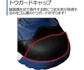 ●安全基準・耐久性をクリアする信頼の品質。つま先革を破れから防ぐトウガード付き。