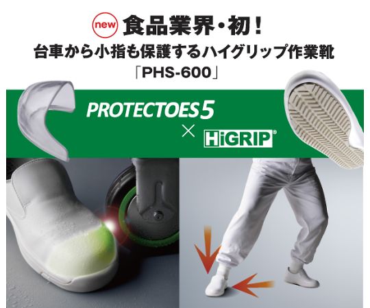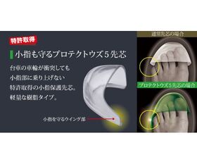 ●食品業界・初!台車の車輪が衝突しても小指部に乗り上げない特許取得の小指保護先芯を搭載。軽量な樹脂タイプ。
