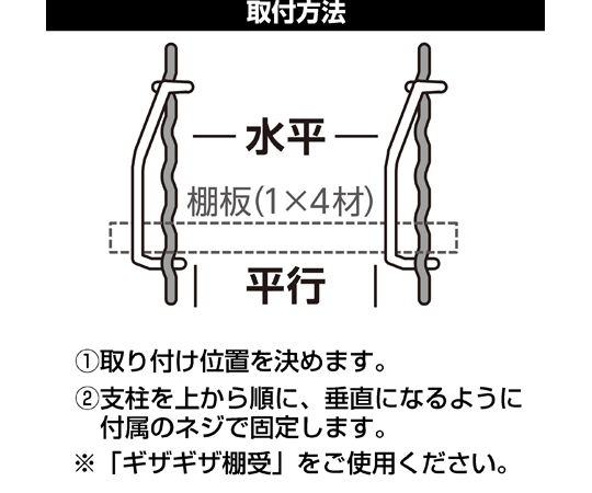 ●「Kabette(カベッテ)」ギザギザ棚支柱は壁にビスで固定します。「Kabette(カベッテ)」棚受と一緒にお使いください。