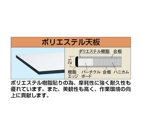 ●ポリエステル天板を使用している為、美観・耐摩耗性に優れています。