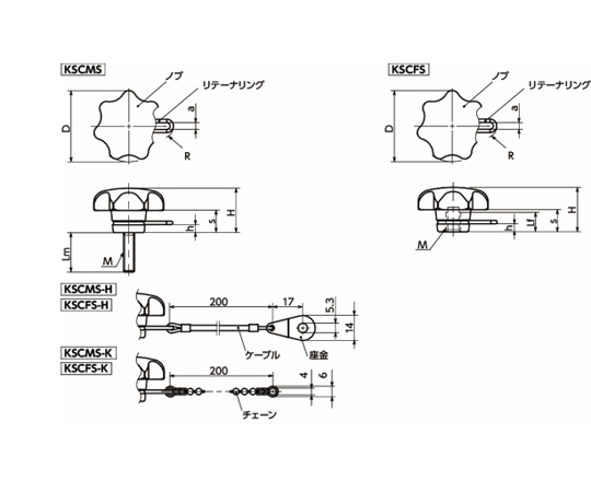 ●ノブと機械・装置をケーブル・チェーンで連結して、ノブの紛失・脱落を防止します。
