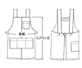 ●多機能ポケットつき、フロントスリット入ショート丈エプロン。