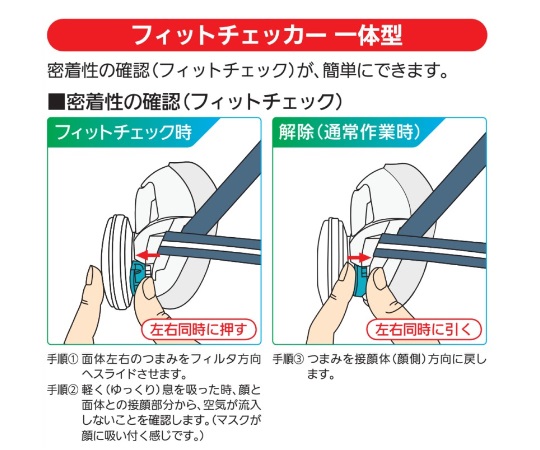 ●フィットチェッカー一体型のため、密着性の確認が簡単です。